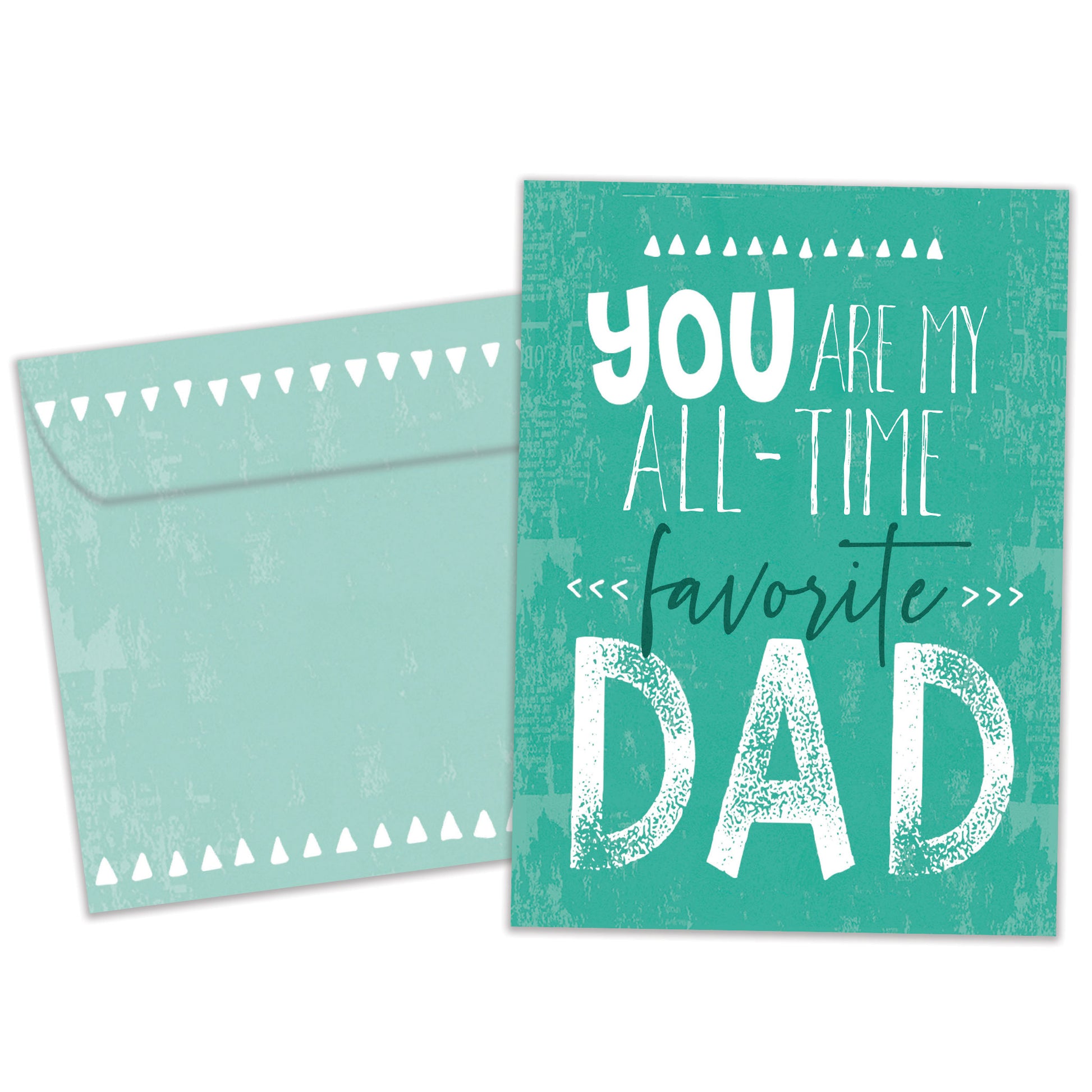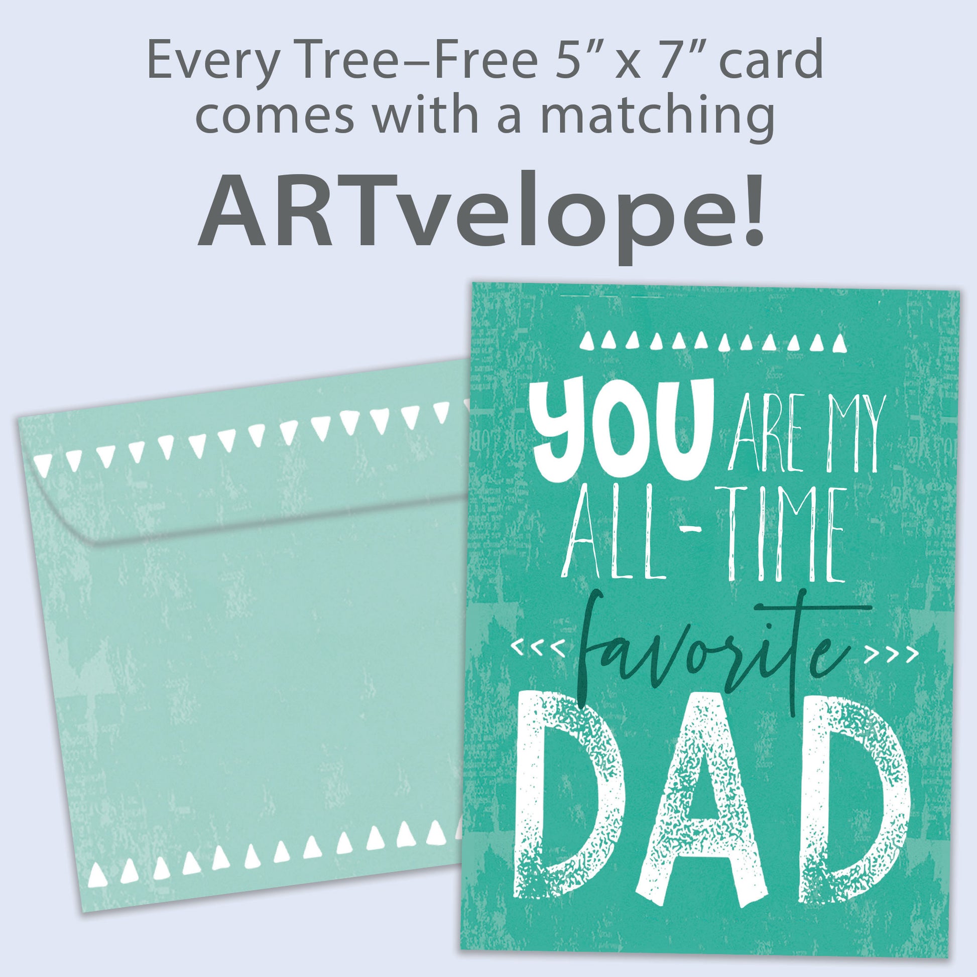 This 5 x 7 Father's Day greeting card reads "You are my all-time favorite dad" on the cover, and on the inside shares the message "Happy Father's Day". It features art by Sarah Taylor, includes a fully printed matching ARTvelope, and is made from 100% post-consumer recycled material. Proudly made in the Canada.