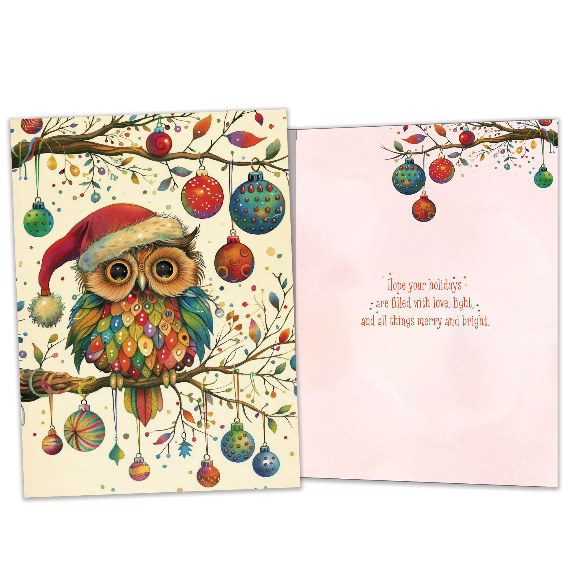 This 5 x 7 Holiday greeting card is blank on the cover, and on the inside reads "Hope your holidays are filled with love, light, and all things merry and bright.". It features art by J.K. Stewart, includes a fully printed matching ARTvelope, and is made from 100% post-consumer recycled material. Proudly made in the Canada.