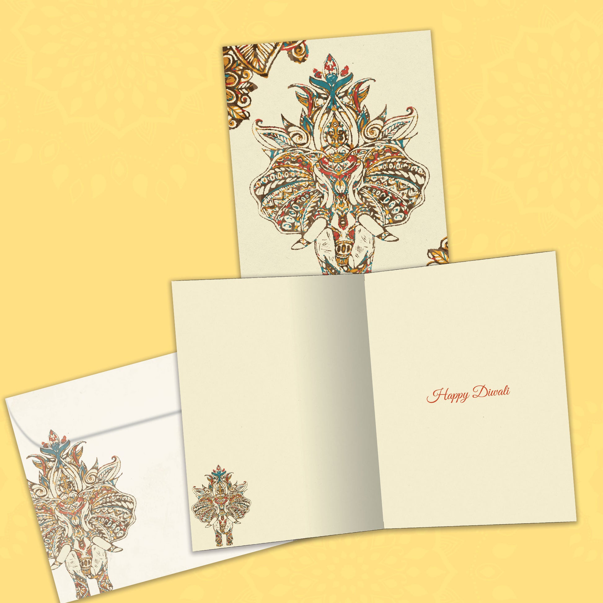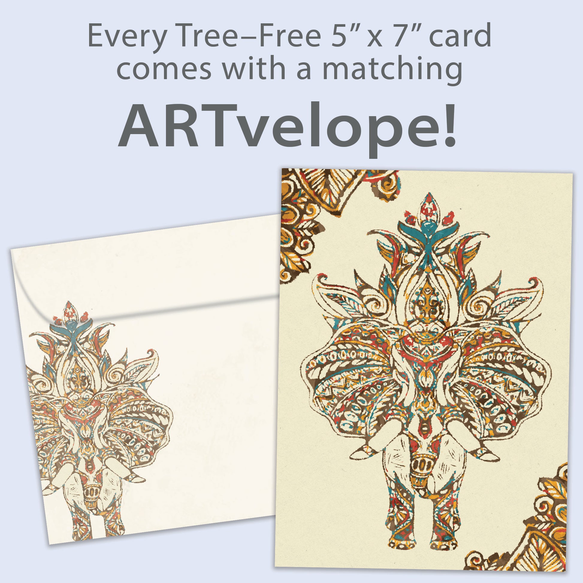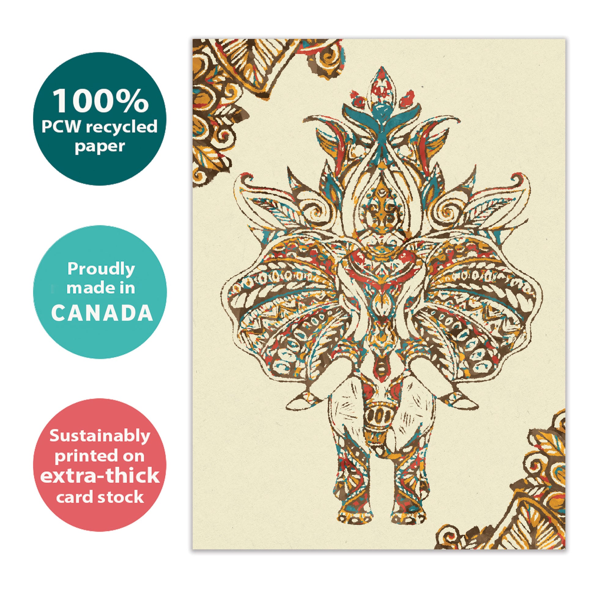 This 5 x 7 Diwali greeting card is blank on the cover, and on the inside shares the message "Happy Diwali". It features art by Tree-Free Greetings, includes a fully printed matching ARTvelope, and is made from 100% post-consumer recycled material. Proudly made in the Canada.